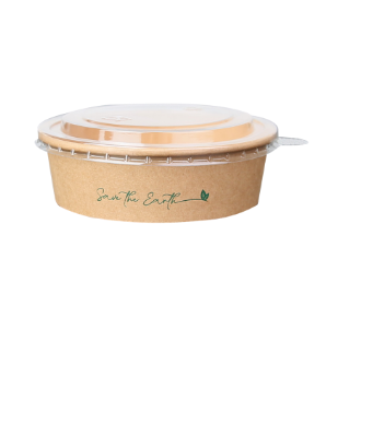 Envase alimentario de cartón, cuya capa interna está plastificada. La tapa es de plástico PET. Ideales para contener comida rápida, take away, etc.